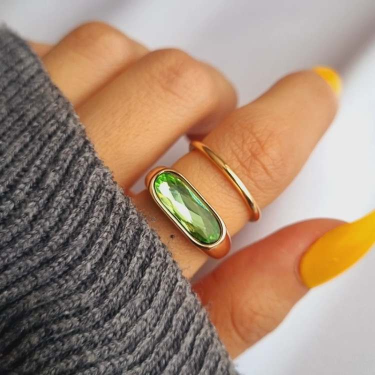 ✨پک انگشتر 2 تایی ،یکی با نگین سبز و دیگری یه حلقه رینگی مینیمال✨