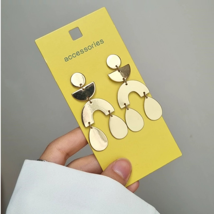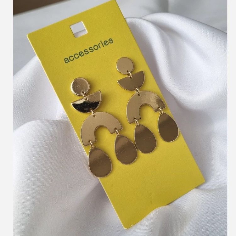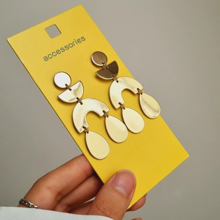 طراحی مینیمال و هندسی این گوشواره و رنگ و لعاب طلایی که داره همه توجه ها رو به خودش جلب میکنه✨😊